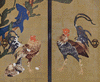 A painting of cocks and cacti (done on sliding doors of gold paper)