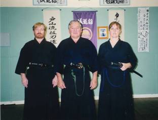 Ray Lawrence (middle) with Wollongong's Robert Brown and Sydney Iaidoka Ruth Franklin on the occasion of his training visit to NSW, April 2003.